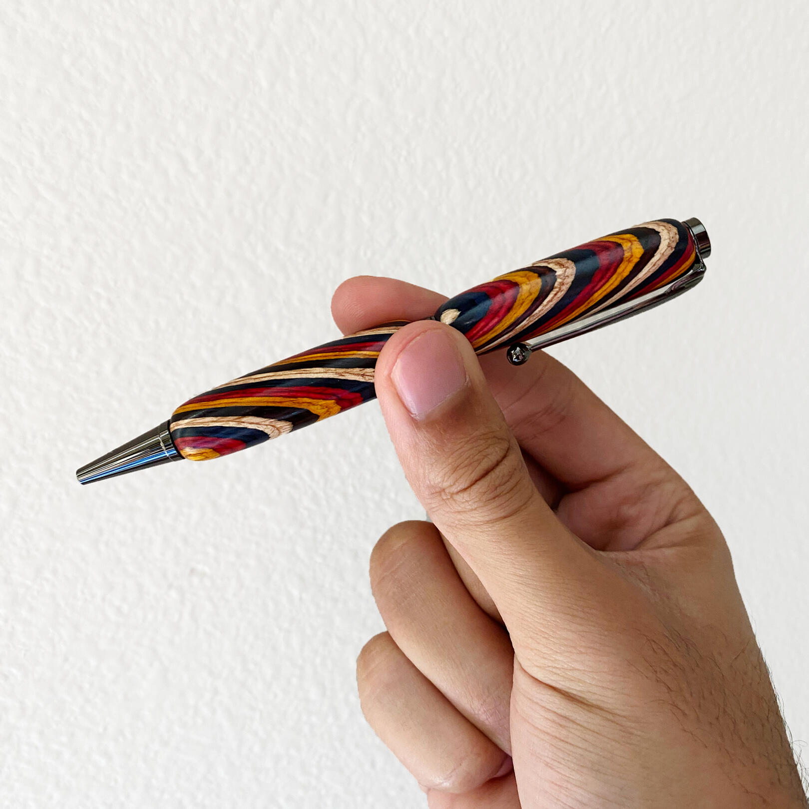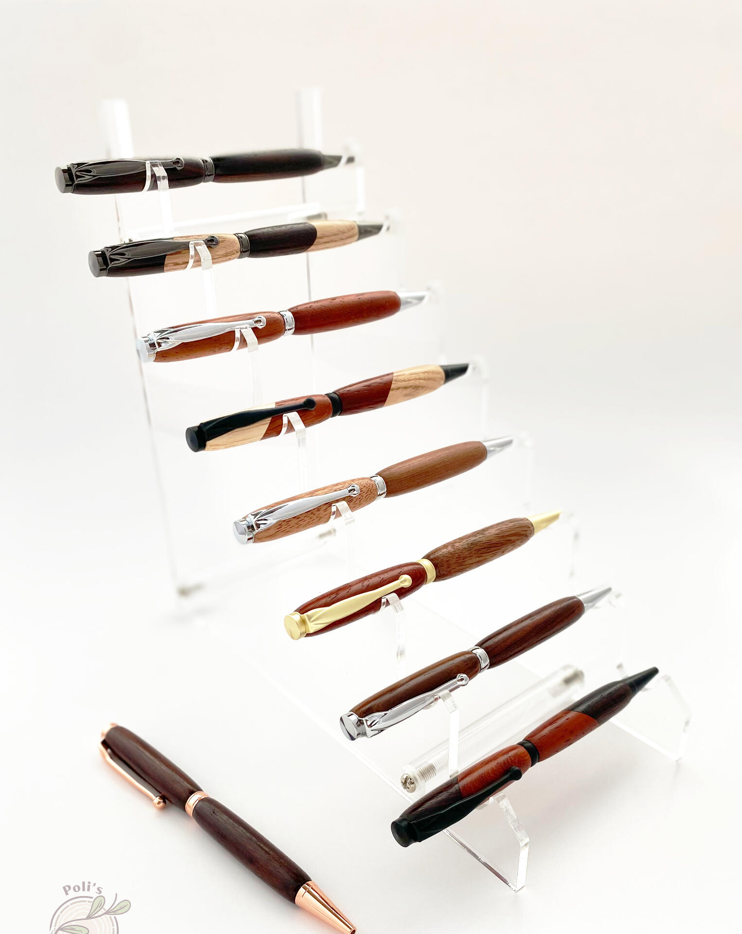 Handcrafted artisan ballpoint pens made with care from a variety of selected wood and acrylics. Each pen is a one of a kind functional art piece that is hand-turned, assembled, and polished by Poli in sunny San Diego, CA.