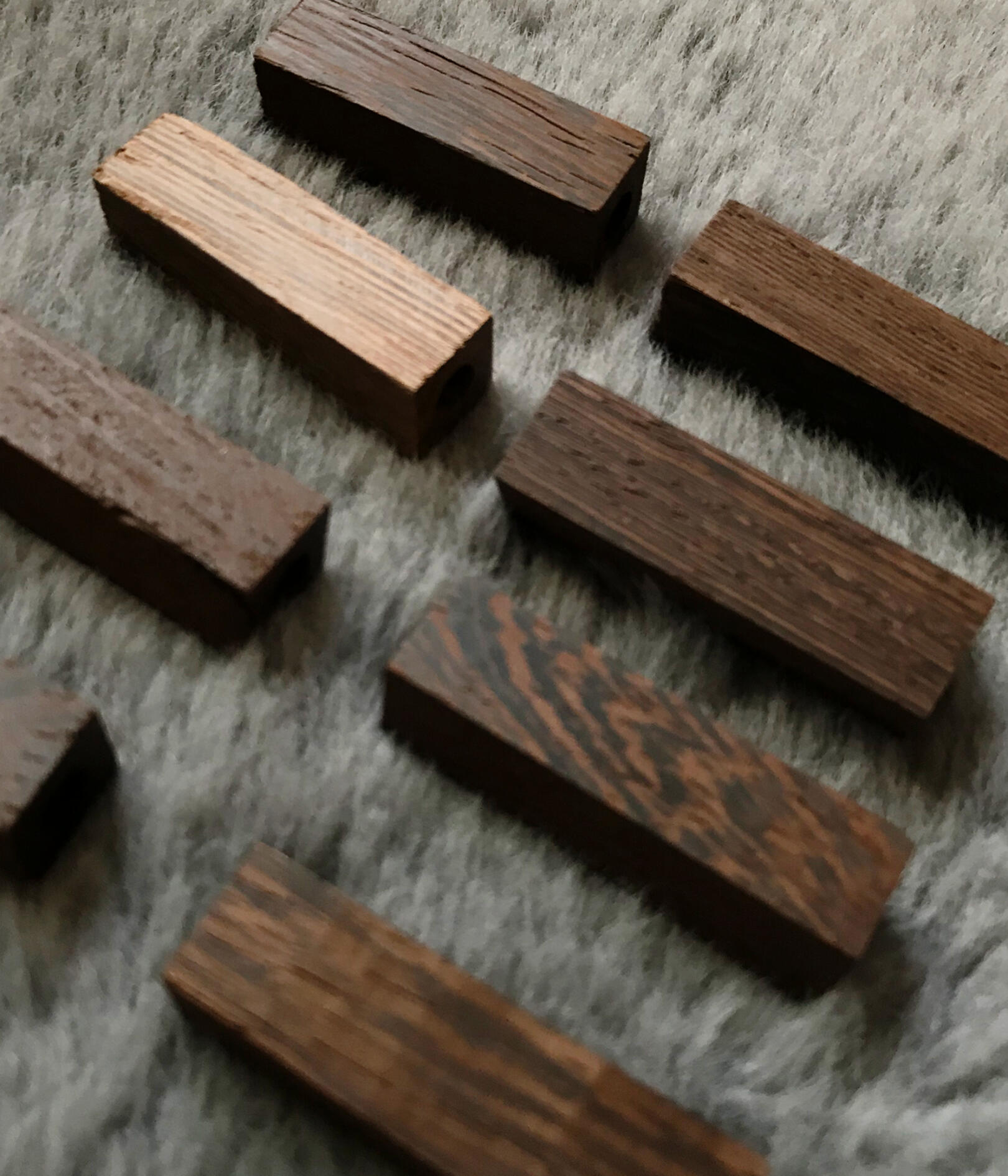 It's all about the grain! Solid hardwood standards of Ash, Oak, Walnut, Cherry are used. Lesser known wood like Paduak, Wenge, Milante, Purpleheart, Indian Rosewood, and Zebra can create beautiful interest. Acrylics are more difficult to be turned but are fun to add in every once in awhile.
