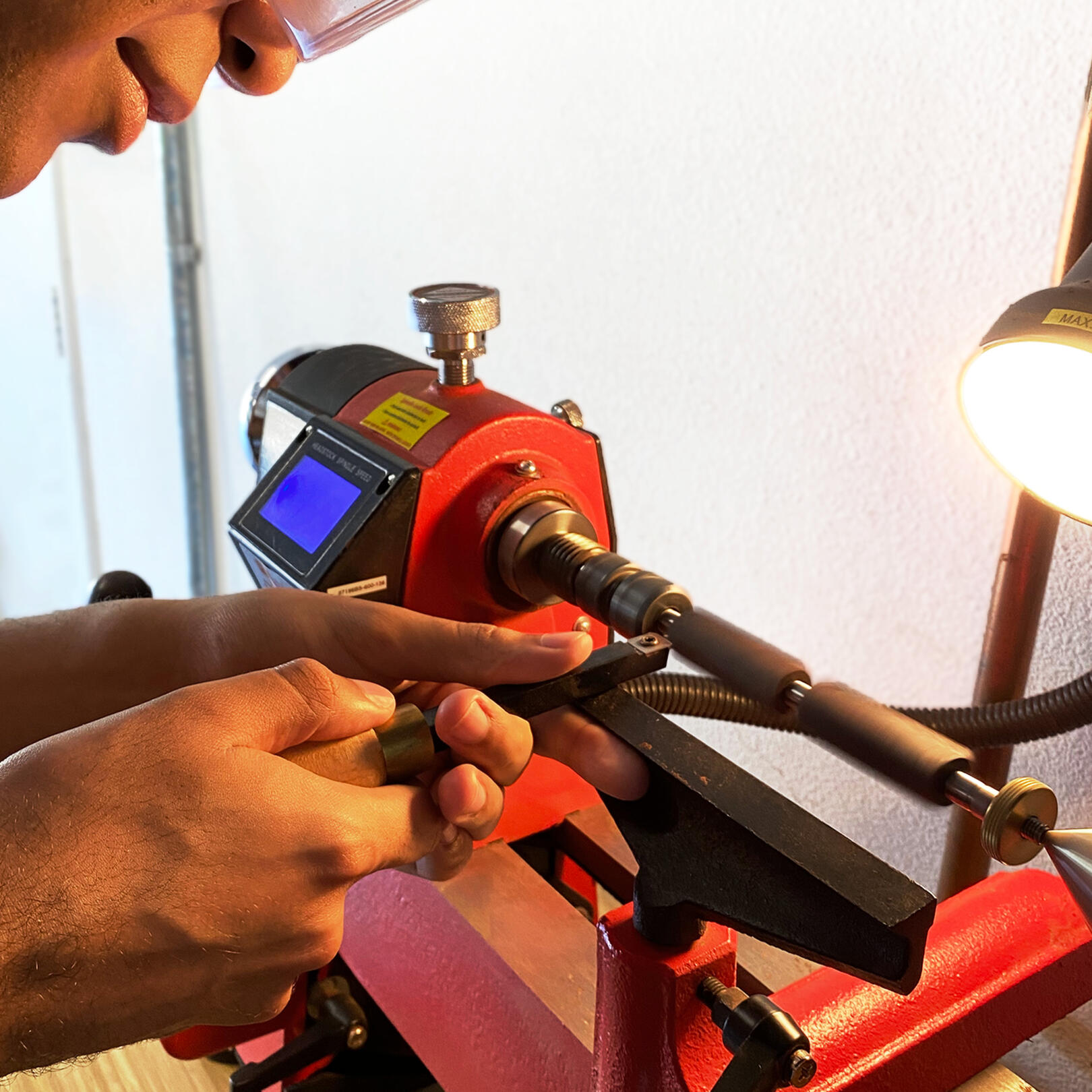 Each pen is crafted by hand from the start of the process all the way to the finish. Poli spends hours meticulously working the wood with his lathe before assembling the various pen pieces together.